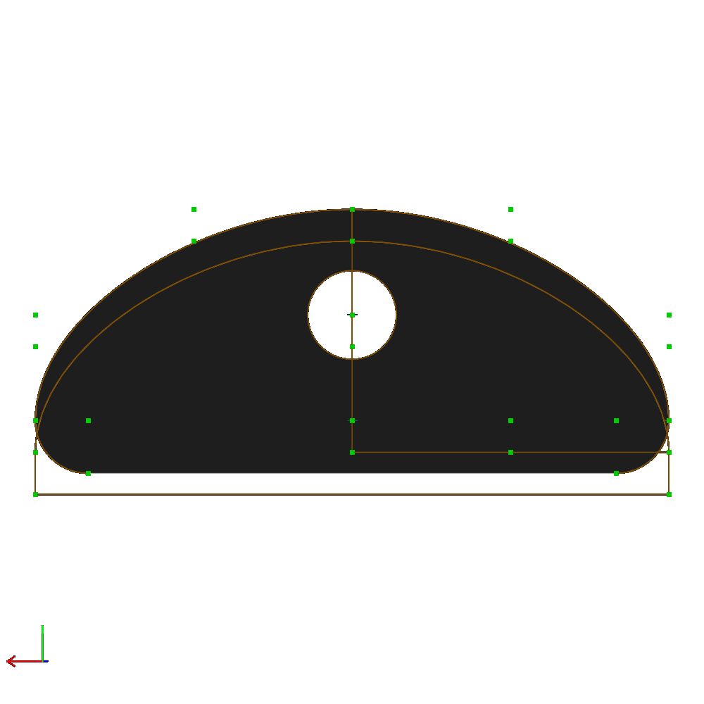 This shape is extruded by 3 mm, a good amount for panels, sheets etc. which are expected to be somewhat stiff. Similarly another shape is constructected, shifted down by 2 mm. The so created rim is what secures the DMMs stand on the mount. The final part then looks as following: